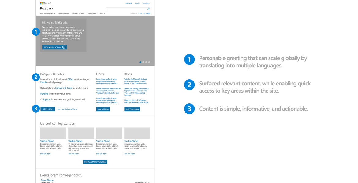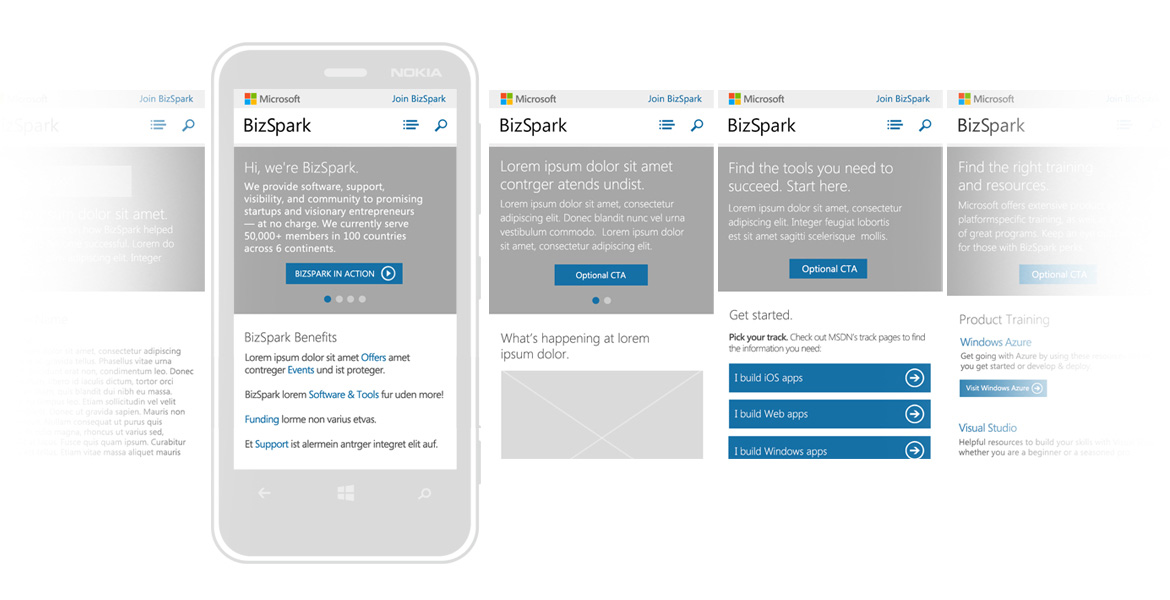 I created a responsive experience for the Microsoft BizSpark team, and worked on creating clear and actionable information architecture, while expressing a strong and compelling BizSpark identity through the entire experience.