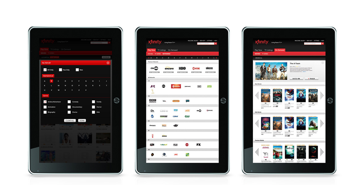 This Windows 7 app was created for Comcast's Xfinity application to be demoed at CES 2011. The app consists of highlighting Comcast's control remote capabilities such as change channels, search XFINITY On Demandâ„¢, and TV listings, all with greater convenience.